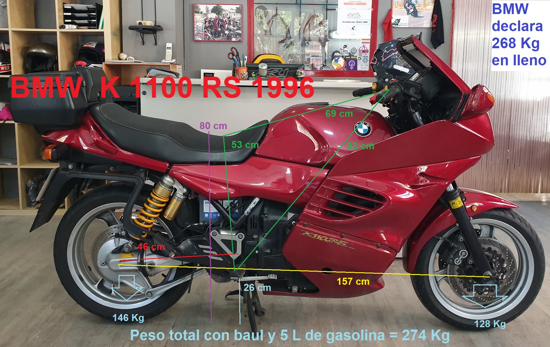Casualmente tenía que devolver por esas fechas la Aprilia RSW 500 del mundial así que se me ocurrió pesarla como a mi; tomarle medidas reales y compararlas con todas las «modelos» que pasan por Motoadictos Taller y así hacer una lista con fotos donde además, podáis ver cuál es más cómoda y el triángulo de posición que forma cada una para que os hagáis una idea.